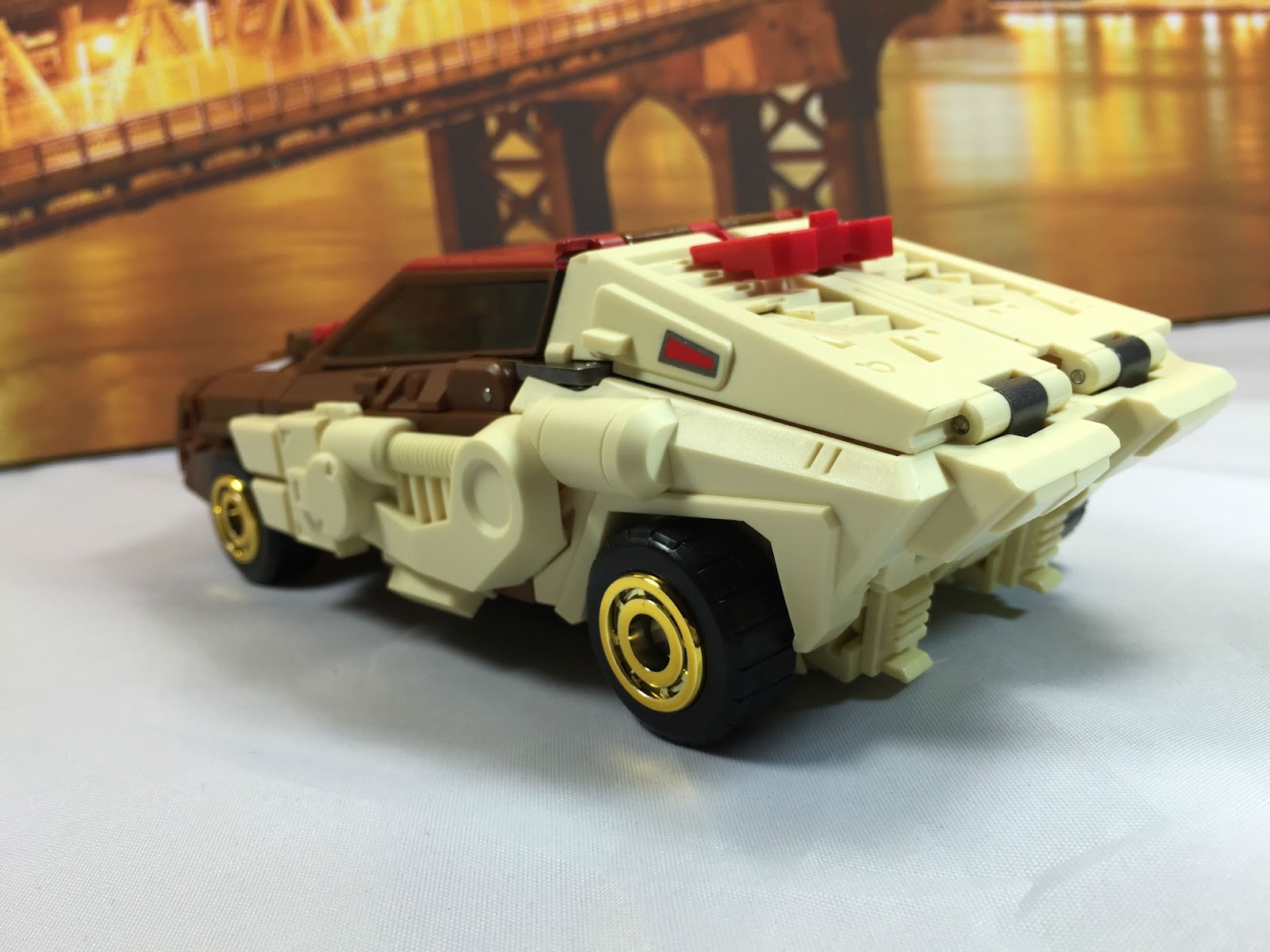 You can see the car wheels, but that is accurate to G1 Chromedome, and they were not there the Internet would probably riot. Everything else disappears into an ultra blocky set of Brown and Beige curtains….or a cool looking robot.