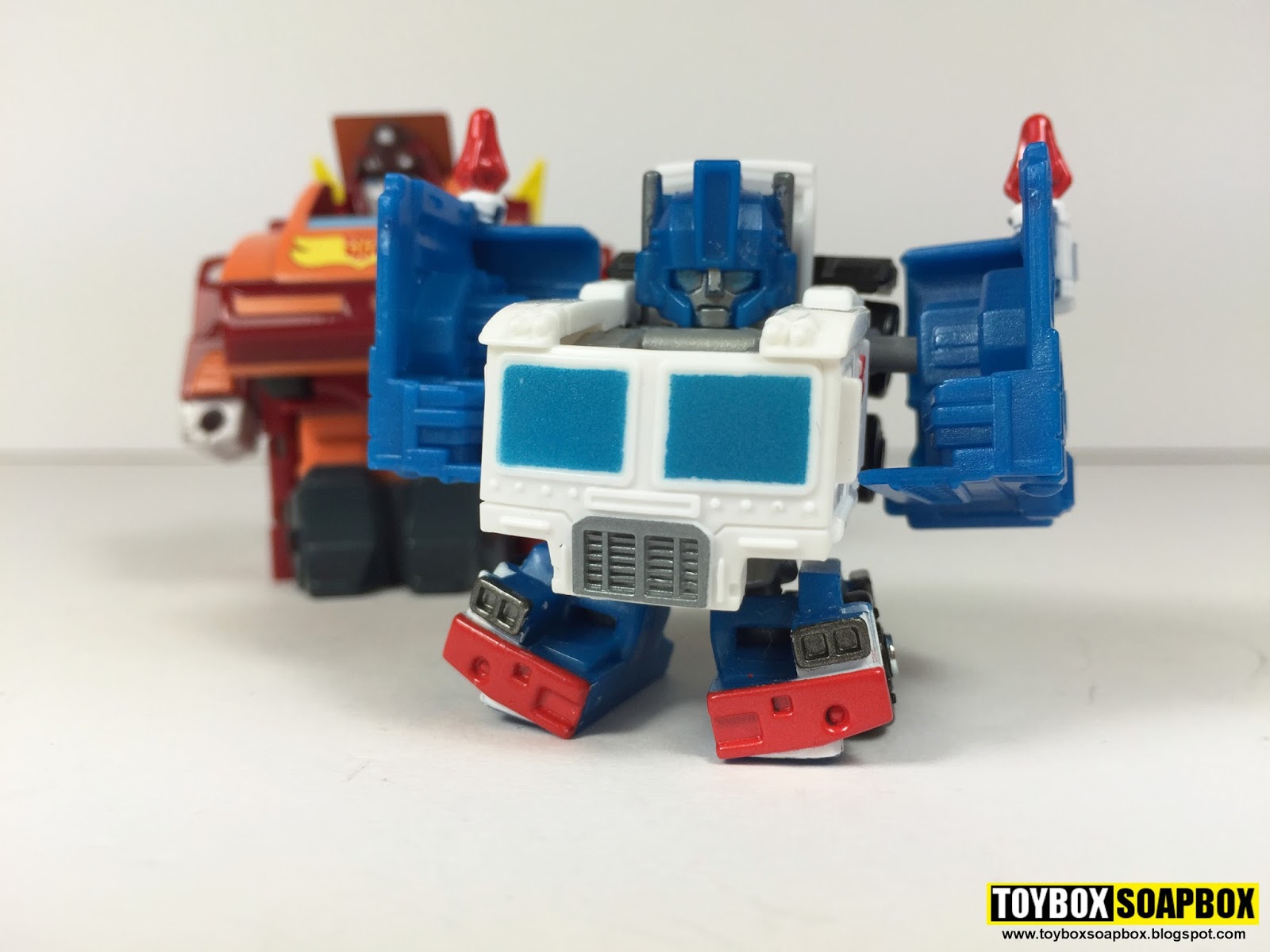 Q Transformers are chibified versions of Transformaers characters. Takara funnelled inspiration from the Penny Racers to create the original mini-bots giving them a chunky, chibified appearance and this modern Q-Transformers lines feels like a spiritual successor to both.