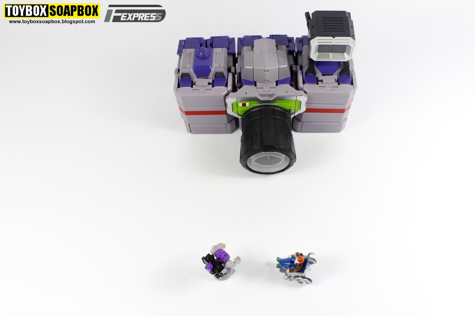 Not only does it take it’s size cues from the Visualizers – it also boasts an array of camera like features. There is no fake display or anything like that, Maketoys were the only ones who cared to do that, but KFC loaded this set with its fair share of gimmicks.