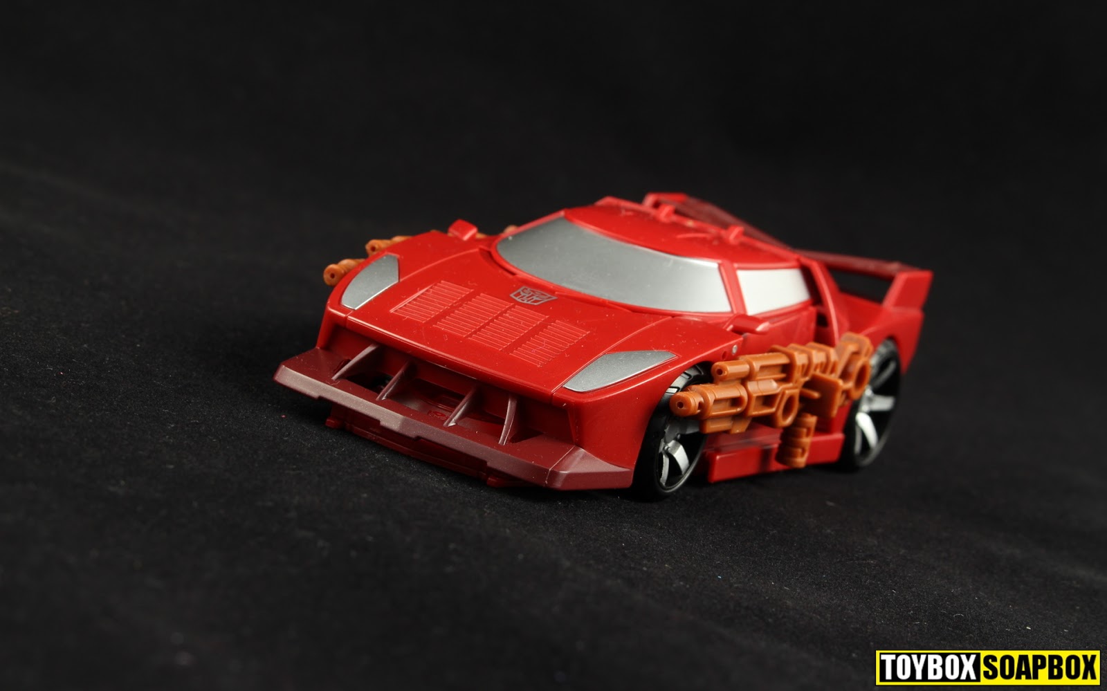 With a gorgeous colour scheme that scales back the LSD trip that is Hasbro’s attempt, it’s a shame that Hasbro Afterburner is so easily dismissed by many fans. He’s still an excellent figure and a great, in keeping with the line approach to the character. Anyone else feel really thirsty for some Sunny D?
