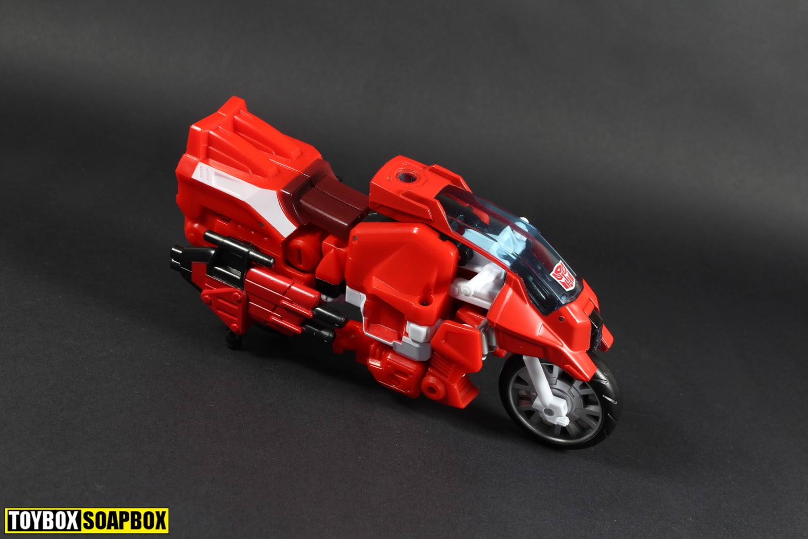 With a gorgeous colour scheme that scales back the LSD trip that is Hasbro’s attempt, it’s a shame that Hasbro Afterburner is so easily dismissed by many fans. He’s still an excellent figure and a great, in keeping with the line approach to the character. Anyone else feel really thirsty for some Sunny D?
