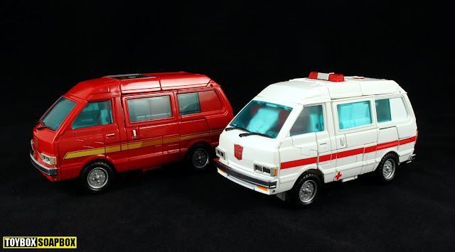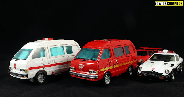 Even as someone who had no beef with the hip panels, I will happily concede that their existing felt like Takara had left Ironhide and Ratchet slightly unfinished. Everything else on these figures folds away and reforms so cleanly and cleverly that their appearance was an odd wrinkle on an otherwise beautifully ironed outfit.